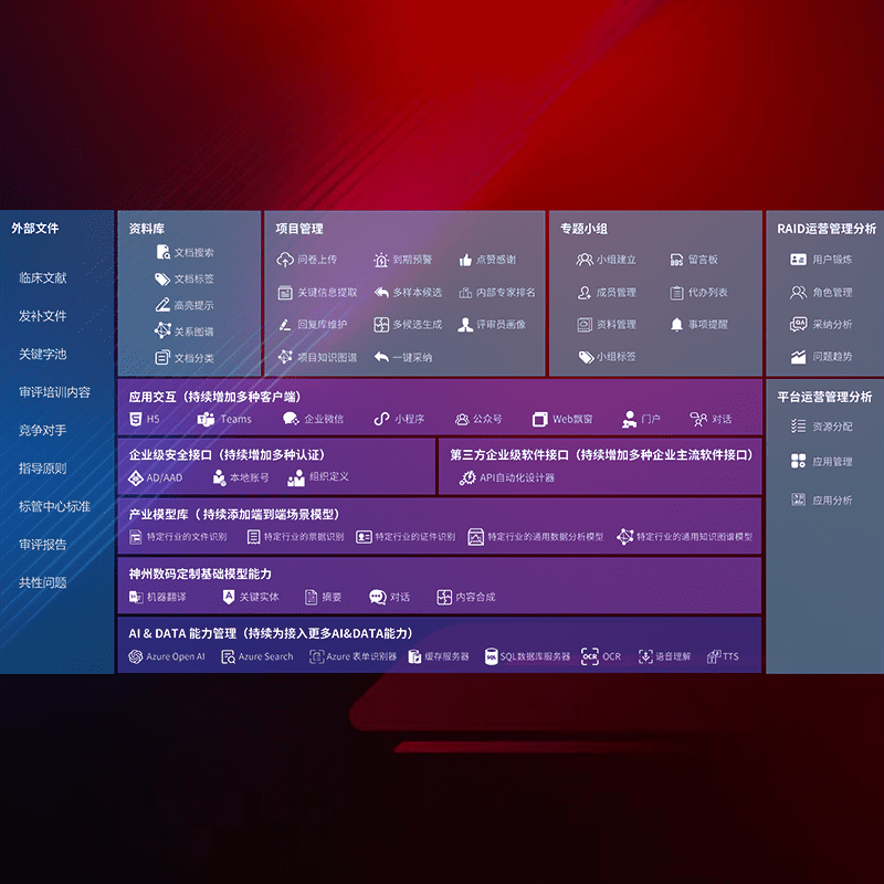 医疗器械产品上市前,,,,要熟悉严格与繁复评审标准,,,,整理分析监管机构指导文件中的海量信息。。。。企业急需一个智能化解决方案,,,,提升知识管理效率,,,提高评审通过率,,以提升其市场竞争力。。。