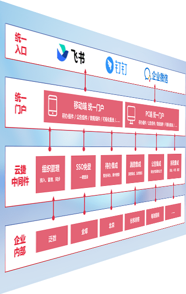 对协作平台提供支持服务,,支持企业应用与协作平台对接,,,包含组织同步、、消息集成、、待办集成等。。。支持目前主流的协作平台:钉钉、、企微和飞书。。。。